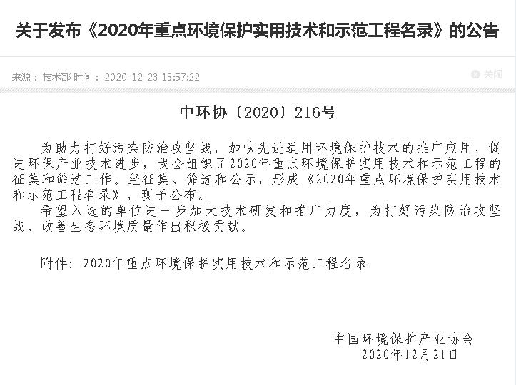 為助力打好污染防治攻堅(jiān)戰(zhàn),加快先進(jìn)適用環(huán)境保護(hù)技術(shù)的推廣應(yīng)用,促進(jìn)環(huán)保產(chǎn)業(yè)技術(shù)進(jìn)步,中國(guó)環(huán)保產(chǎn)業(yè)協(xié)會(huì)組織了2020年重點(diǎn)環(huán)境保護(hù)實(shí)用技術(shù)及示范工程的征集和評(píng)價(jià)工作。經(jīng)推薦、形式審查、專家評(píng)價(jià)及現(xiàn)場(chǎng)考察后,編制形成《2020年重點(diǎn)環(huán)境保護(hù)實(shí)用技術(shù)及示范工程名錄》,由浙江天藍(lán)環(huán)保技術(shù)股份有限公司、山西瑞格金屬新材料有限公司申報(bào)的“鎂行業(yè)鍛白生產(chǎn)線煙氣超低排放工程”項(xiàng)目入選示范工程名錄。