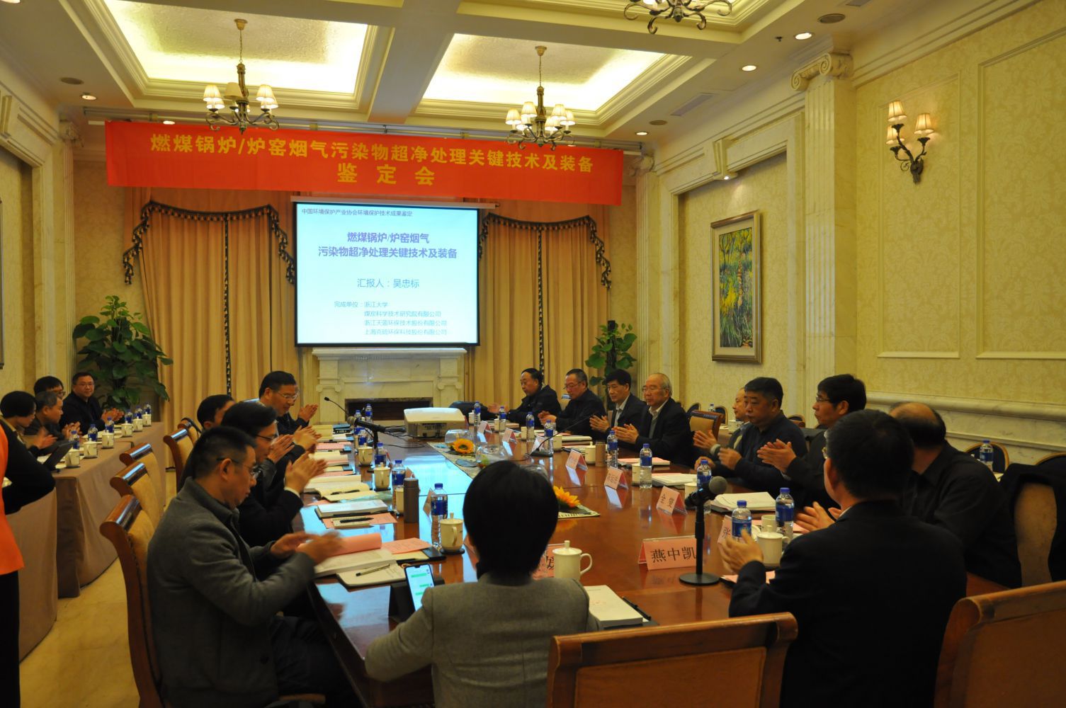 2019年11月21日,“燃煤工業(yè)鍋爐/爐窯煙氣多污染物超低排放控制關(guān)鍵技術(shù)研發(fā)”鑒定會(huì)在杭州順利召開(kāi)。本次會(huì)議由中國(guó)環(huán)境保護(hù)產(chǎn)業(yè)協(xié)會(huì)組織,對(duì)由浙江大學(xué)、煤炭科學(xué)技術(shù)研究院有限公司、浙江天藍(lán)環(huán)保技術(shù)股份有限公司和上海克硫環(huán)保科技股份有限公司四個(gè)單位共同申請(qǐng)的“燃煤工業(yè)鍋爐/爐窯煙氣多污染物超低排放控制關(guān)鍵技術(shù)研發(fā)”成果開(kāi)展鑒定。本次鑒定委員會(huì)由郝吉明院士擔(dān)任主任委員,侯立安院士、劉文清院士擔(dān)任副主任委員,中國(guó)科學(xué)院過(guò)程工程研究所陳運(yùn)法研究員、國(guó)電科學(xué)技術(shù)研究院王小明研究員、大連理工大學(xué)全燮教授、華北電力大學(xué)趙毅教授、中國(guó)環(huán)境科學(xué)研究院張凡研究員擔(dān)任鑒定委員。